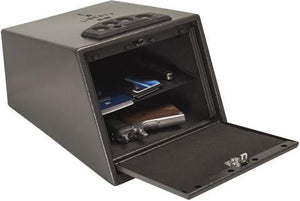 With an auto-opening Door, Lighted Interior, Interior Shelf and a Key Backup, the Liberty HD300 Quick Vault provides ample space and reliable speed when you need it most! The small electronic gun safe's angled front door design allows excellent visibility and simple access.